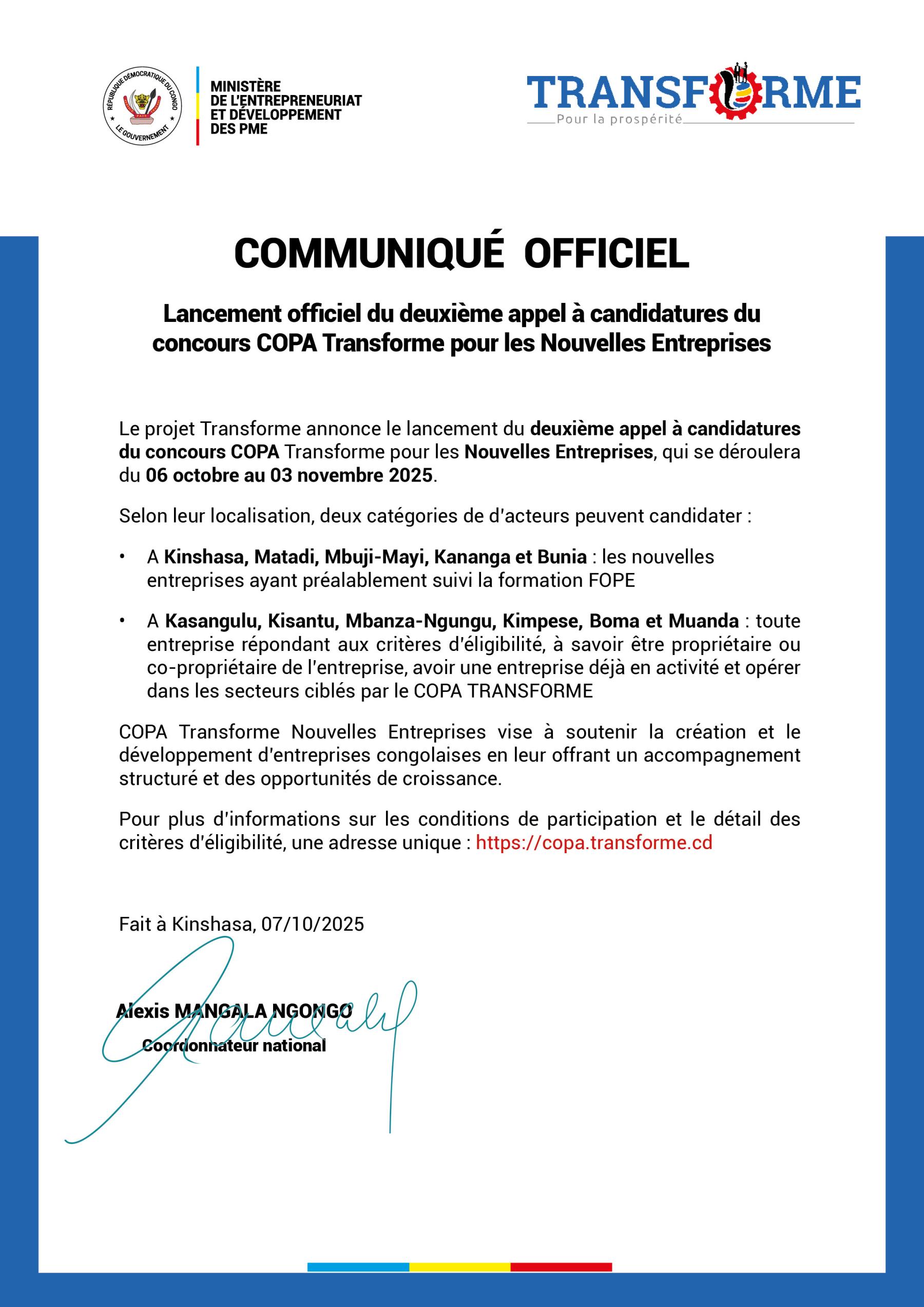 Appel à candidatures – 2ᵉ cohorte du concours COPA-NE