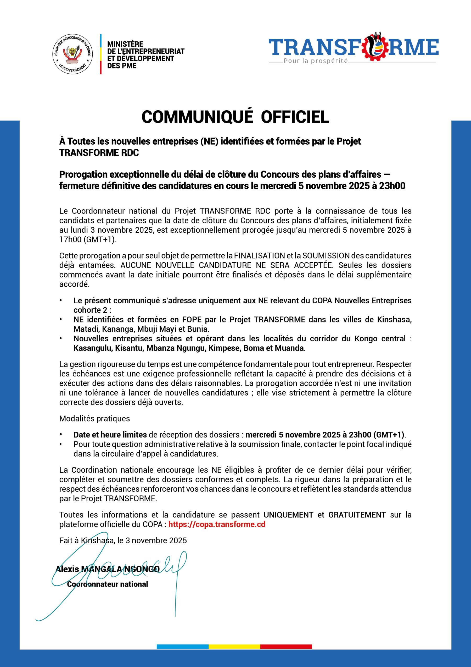 COPA NE cohorte 2 : dernière chance accordée aux retardataires pour finaliser la candidature