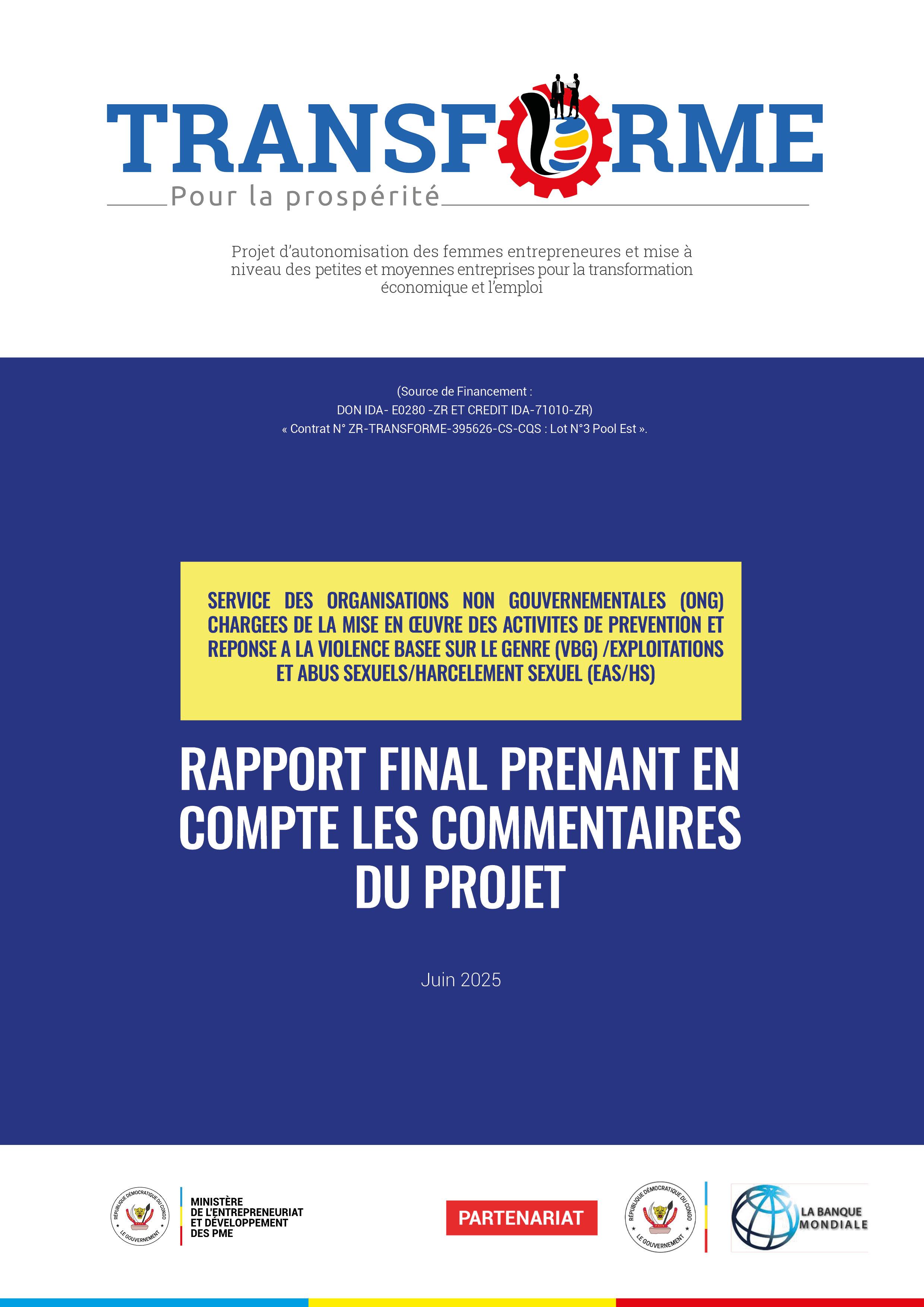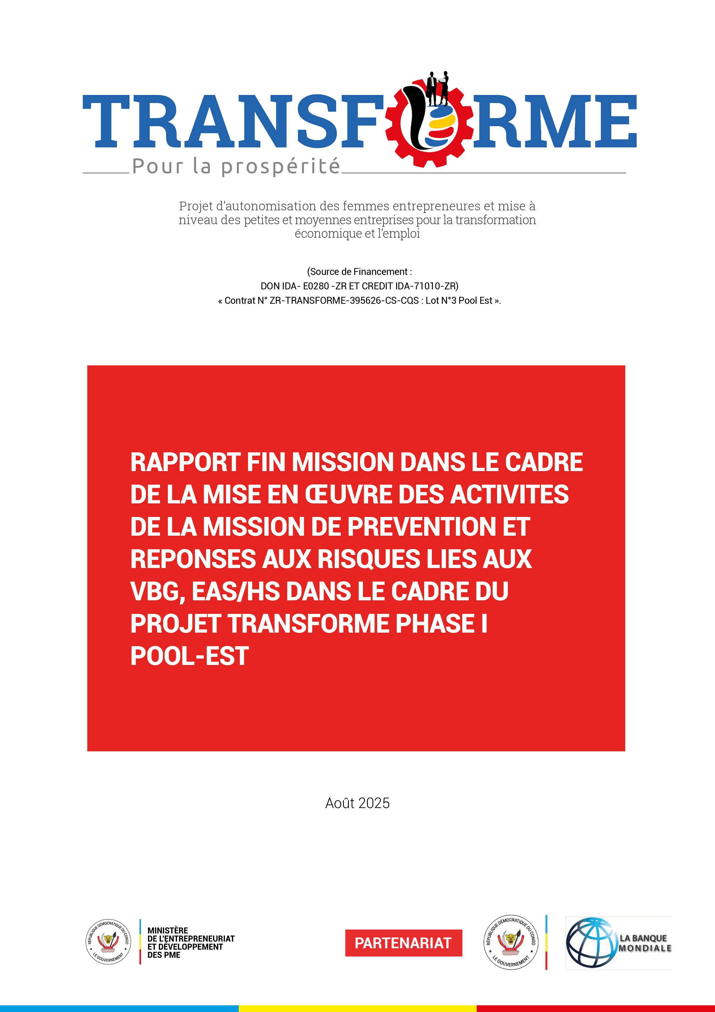 MISSION ACTIVITES DE PREVENTION ET REPONSES EXPLOITATION ET ABUS SEXUELS, HARCELEMENT SEXUELS POUR LE PROJET TRANSFORME DANS LE POOL EST