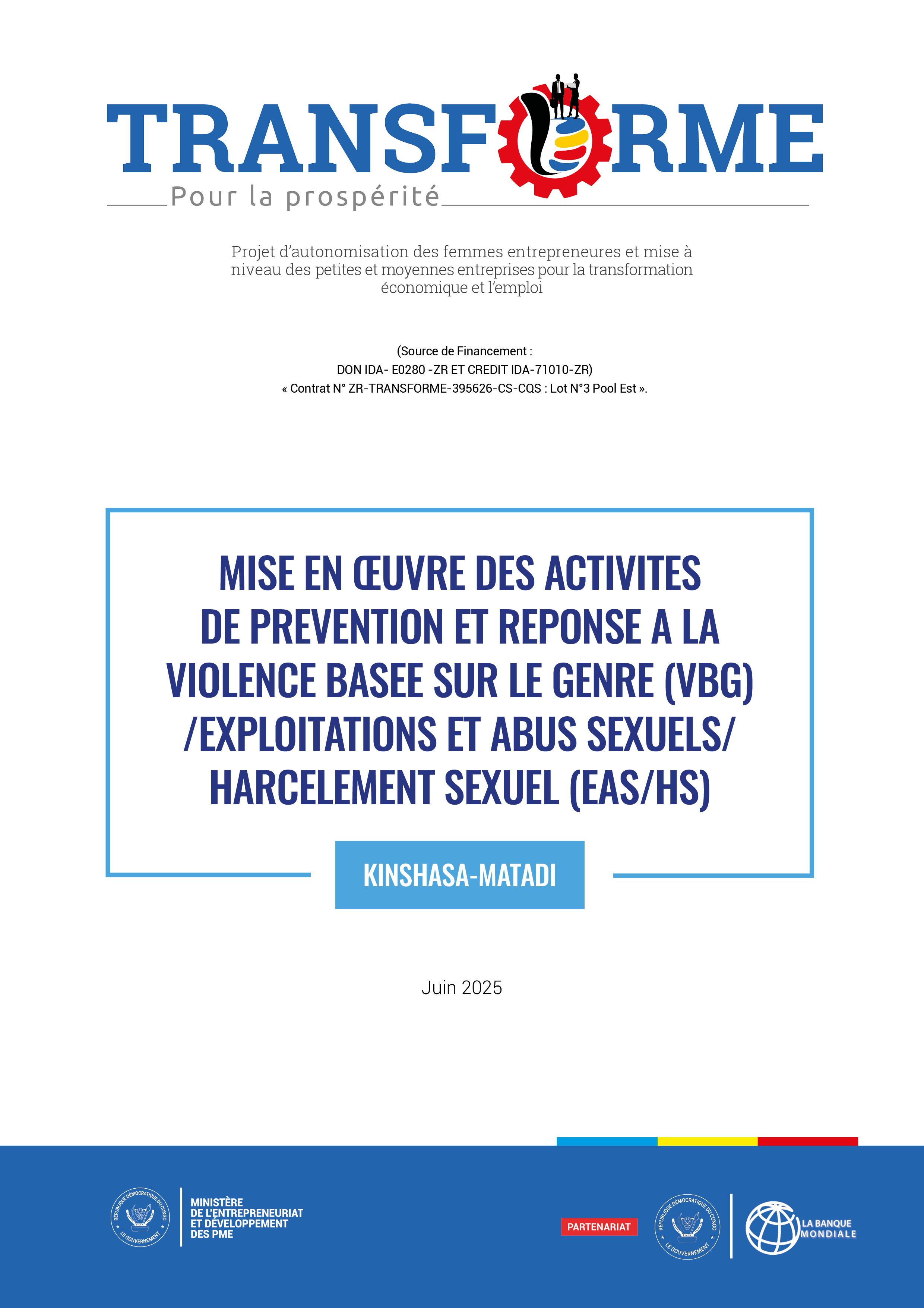MISE EN ŒUVRE DES ACTIVITES DE PREVENTION ET DE PRISE EN CHARGE DES VICTIMES DES VBG ET EAS HS DANS LES VILLES DU POOL OUEST (KINSHASA ET DE MATADI)