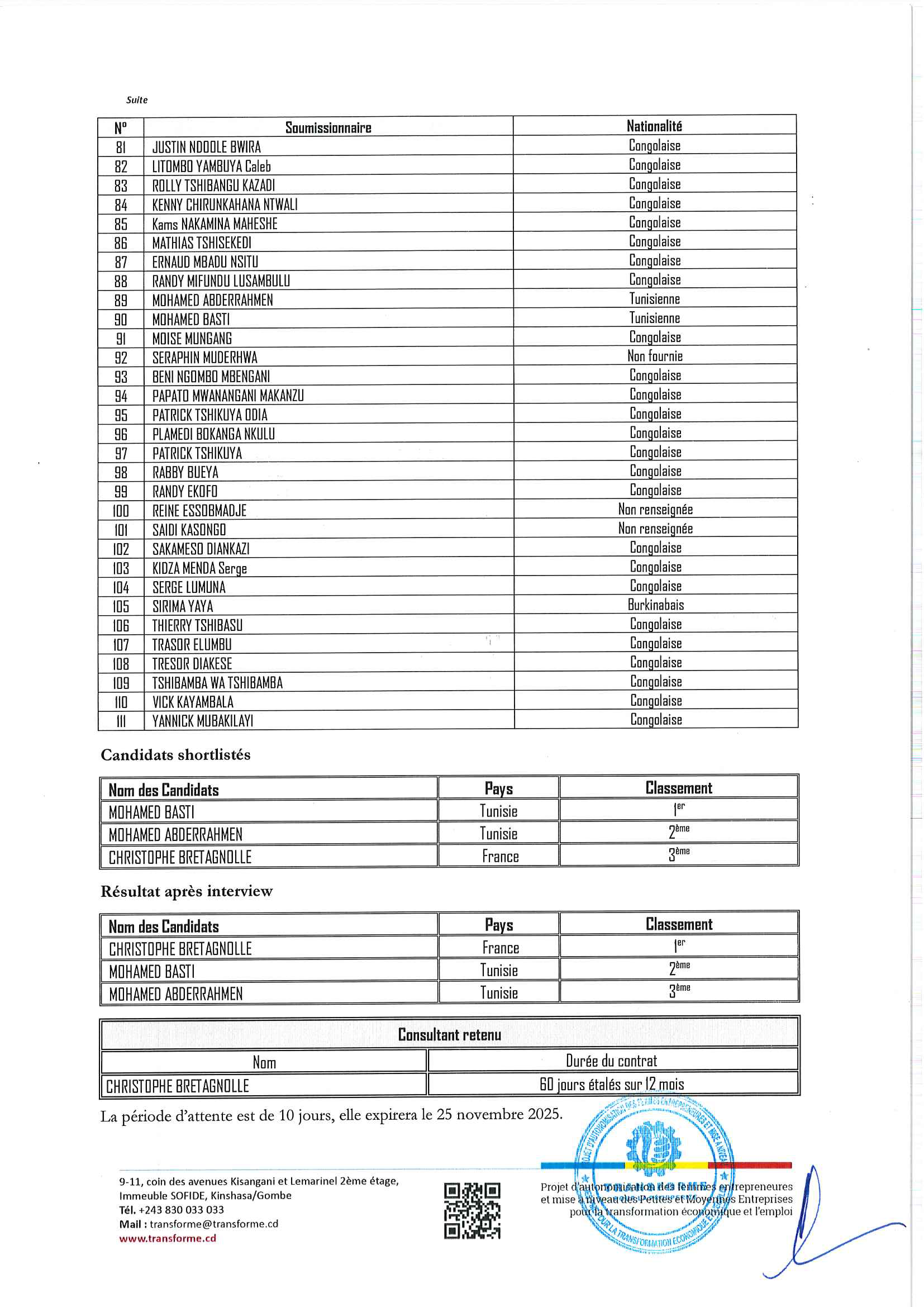 Avis d'attribution