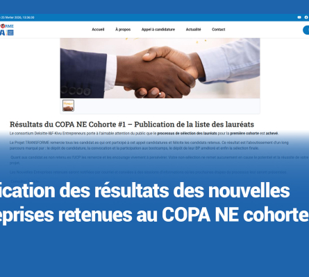 À Bunia, le Projet TRANSFORME célèbre 71 PME sélectionnées a...